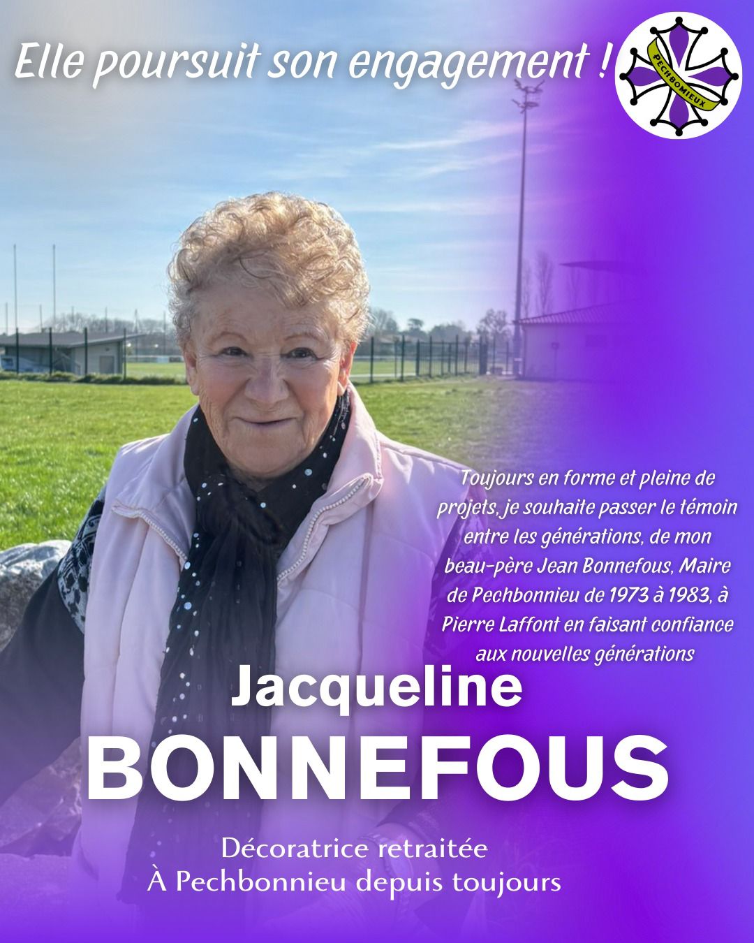 Pierre Laffont est un enfant de Pechbonnieu, engagé dans son territoire. Il a fréquenté l’ancienne école de l’Olivier, les courts de tennis, puis le Collège Jean Dieuzaide.